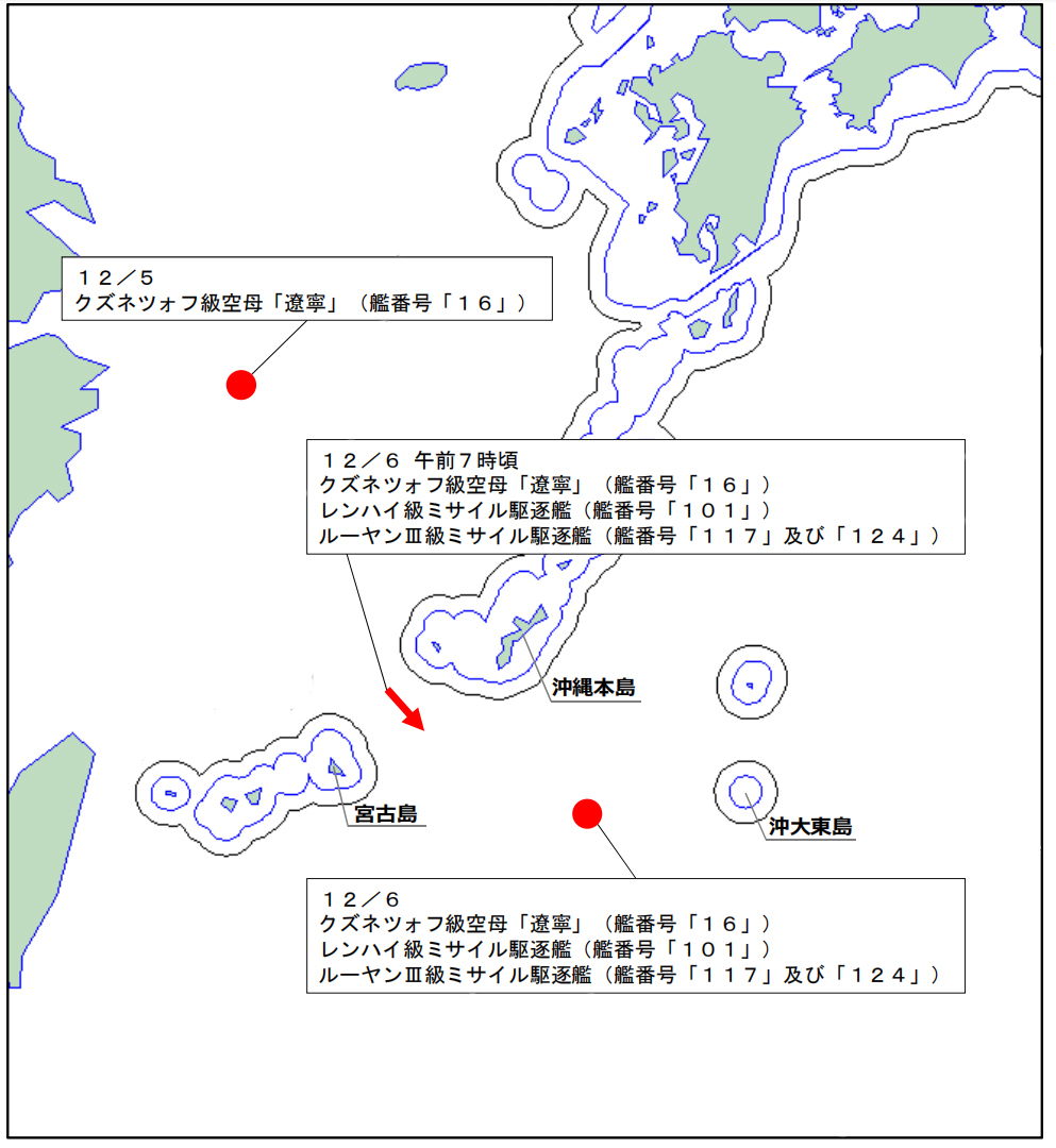 辽宁舰编队航迹图 图自日本防卫省(有修改)